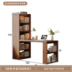 实木转角书桌书架一体靠墙学习桌家用写字桌小户型书房电脑办公桌