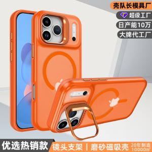 适用苹果17promax磁吸手机壳隐形镜头支架iphone16pro磨砂肤感漆