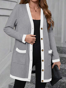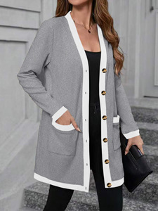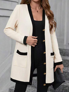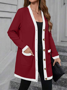 2025跨境欧美速卖通爆款女装时尚简约单排扣拼接撞色女式上衣