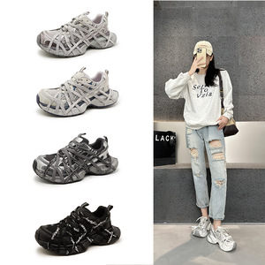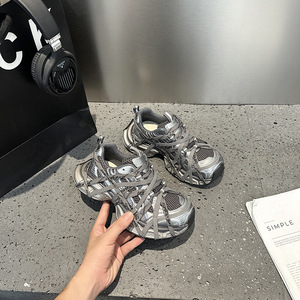 老爹鞋ins超火绑带做旧擦色绑带蜘蛛侠金属休闲鞋运动鞋炸街女鞋