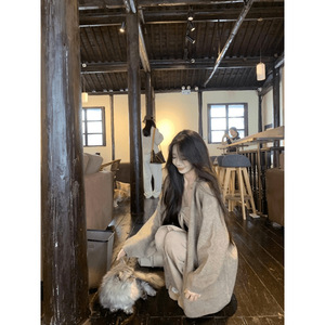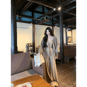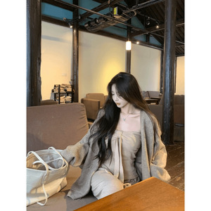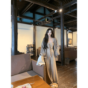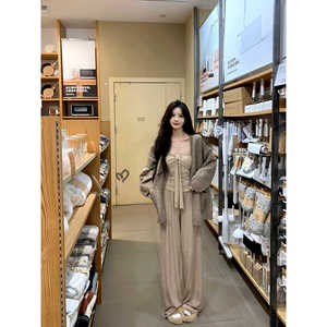 韩版温柔风百搭开衫蝴蝶结针织衫上衣直筒休闲裤三件套女
