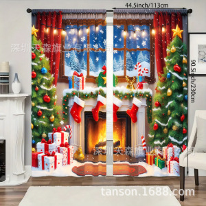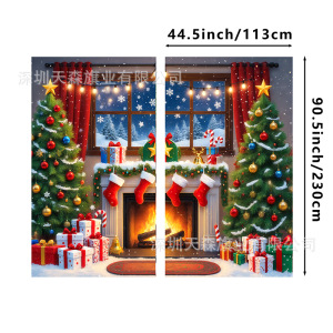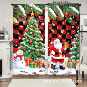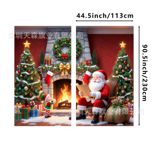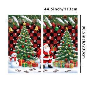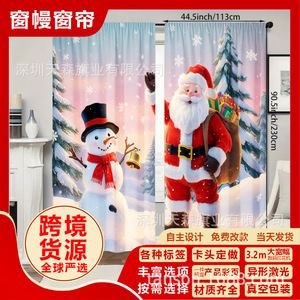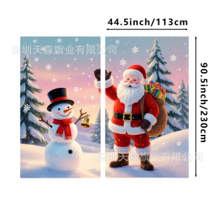 新款圣诞节窗帘窗幔挂饰挂旗跨境节日室内外装饰圣诞老人雪人