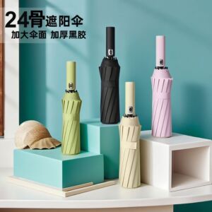 全自动雨伞男士加固防风 24骨超大双人黑胶防晒遮阳伞 晴雨两用伞