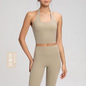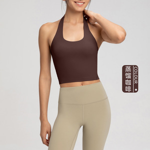Athena lulu运动内衣女带胸垫裸感芯吸速干挂脖跑步运动瑜伽背心