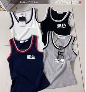 66031#韩版U领撞色设计感无袖吊带背心2025新款潮流百搭打底上衣