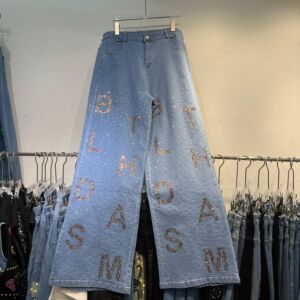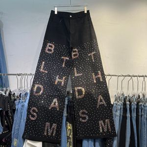 2025秋季新款重工字母烫彩钻时尚显瘦牛仔裤女设计感阔腿直筒裤