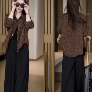 2025秋季新款气质百搭女衬衣时尚豹纹宽松显瘦显白衬衫长袖外套潮