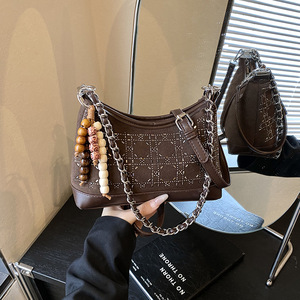 超火轻奢亮钻腋下包包女2025新款高级感链条单肩斜挎包百搭手提包