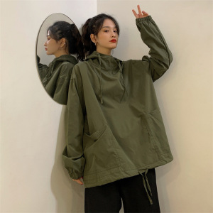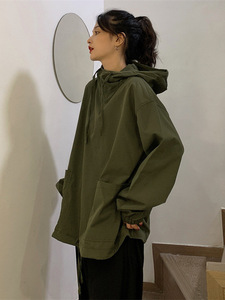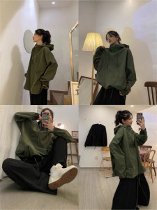 军绿色连帽工装卫衣女2025秋季新款原宿风大码情侣夹克上衣潮批发