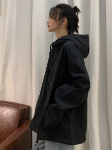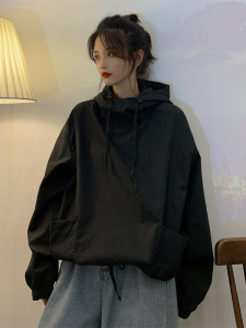 美式复古黑色工装卫衣女设计感小众春秋季ins国潮宽松外套上衣