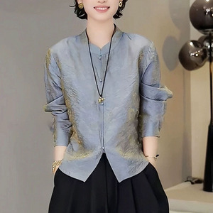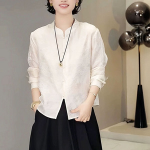“鎏金”2025早秋复古新中式小立领单排扣暗纹提花气质百搭上衣女