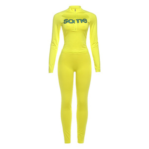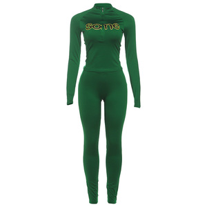 欧美跨境ins秋季外贸新款时尚休闲气质印花长袖上衣修身长裤套装