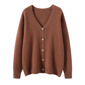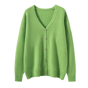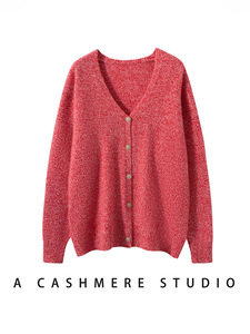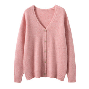 软糯花纱!厚baby小山羊绒针织开衫女V领上衣宽松显瘦毛衣外套