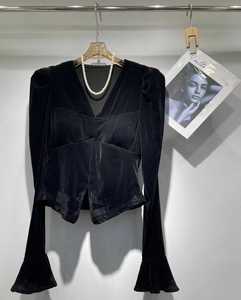 韩版V领不规则花边袖纯欲显瘦丝绒气质打底衬衣女2025年秋季新款