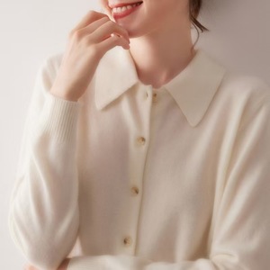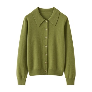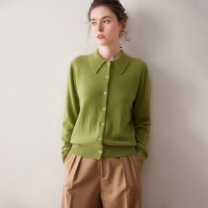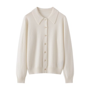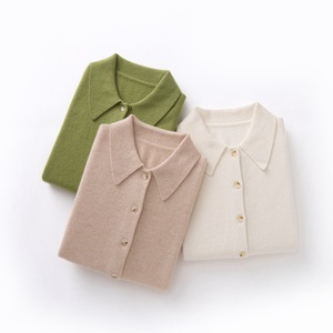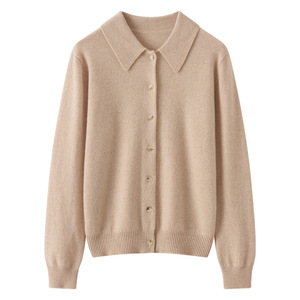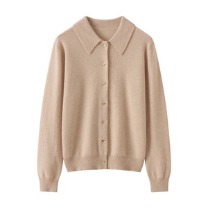 羊绒衬衫女式100%纯山羊绒POLO领开衫秋冬新款柔软优雅百搭上衣