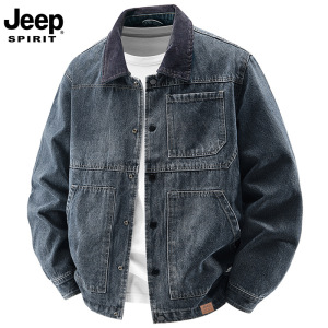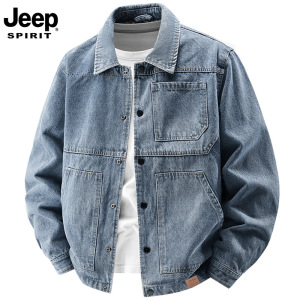 JEEP SPIRIT品牌牛仔外套男春秋季水洗夹克深蓝牛仔蓝耐磨现货休