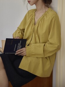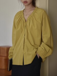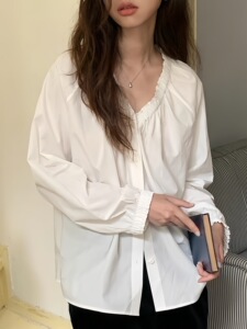 2025AW 60支水洗棉 V领褶皱 插肩袖衬衫