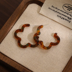 精致时尚镂空树脂晕染花朵耳环女日常通勤气质耳钉小众百搭耳饰
