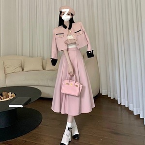 法式赫本风2025新款粉色小香风新款外套半身裙子时尚两件套装女装