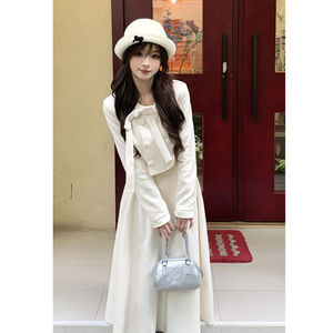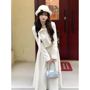 南洋千金 秋冬法式小香名媛风珍珠蝴蝶结字廓形长半裙时尚套装女