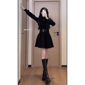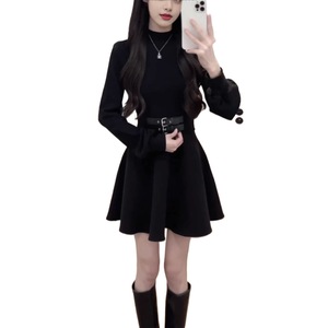 法式黑色内搭连衣裙子女秋冬2025年新款小个子掐腰裙约会穿搭礼服