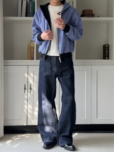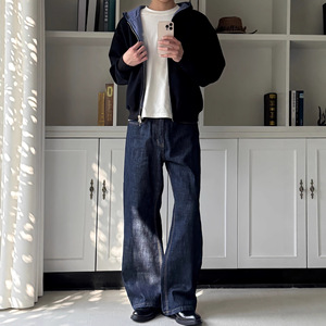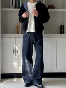 双面穿miu系皇家蓝格纹拉链卫衣男秋季通勤百搭休闲宽松开衫外套