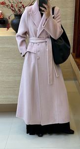 白色正肩系带双面羊绒大衣 秋冬收腰加厚保暖长款西装羊毛呢外套