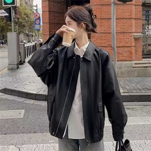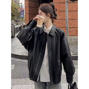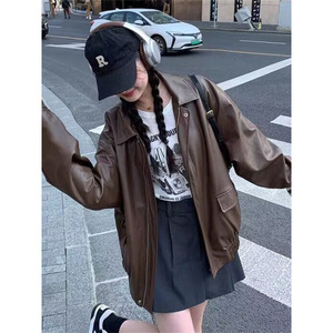 美拉德皮衣美式甜酷穿搭棕色皮衣外套防风宽松美式复古机车服夹克