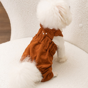 秋冬保暖可爱小熊灯芯绒背带裤两脚裤宠物狗狗猫咪衣服中小型犬