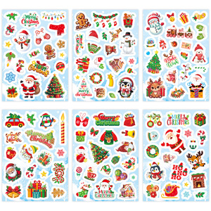 圣诞节派对装饰贴纸 圣诞树圣诞老人雪屋贴纸 礼盒贴纸 手臂贴纸