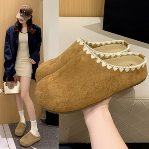 编织厚底勃肯包头半拖鞋女外穿2025秋冬季新款花边慵懒感增高单鞋