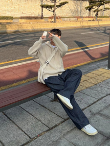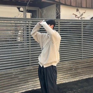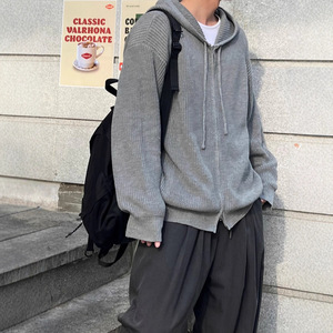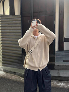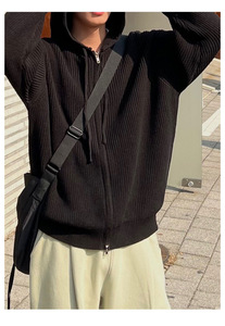 双拉链连帽针织毛衣外套男2025秋季韩版潮流慵懒风百搭情侣款上衣