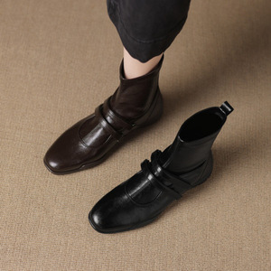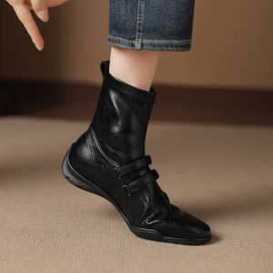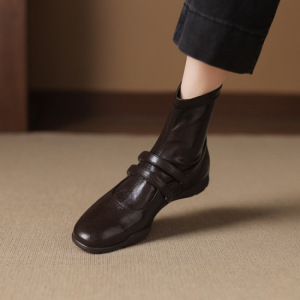 新款夹鞋4.5cm运动风~款真皮短靴女软底芭蕾靴复古配裙4.5cm运动