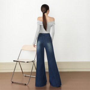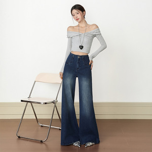 不贴腿微喇叭牛仔裤女小个子港味复古宽松显瘦喇叭百搭慵懒拖地裤
