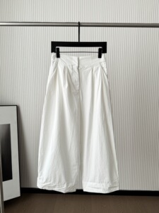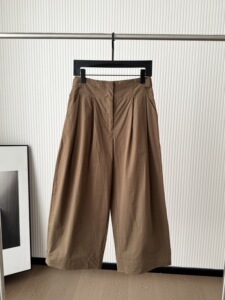 082507 秋季新款女士复古纯色休闲百搭高腰显瘦桶型剪裁阔腿长裤