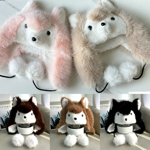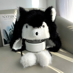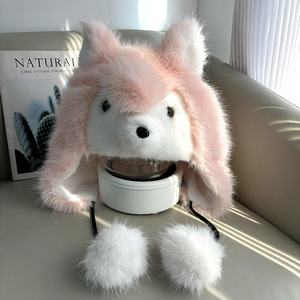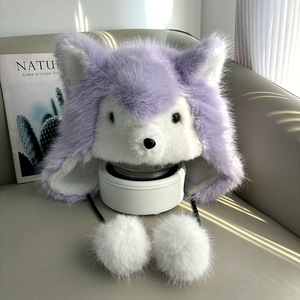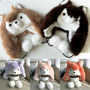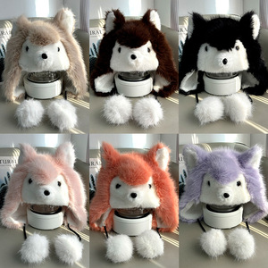 新款呆萌卡通小狗保暖毛绒帽子雷锋帽冬季防寒护耳可爱毛绒帽