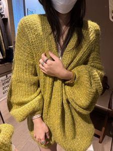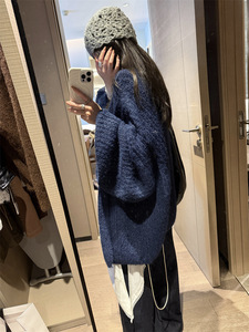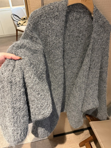 韩系慵懒松弛感灯笼袖软糯羊驼毛针织大开衫女早秋休闲毛衣外套