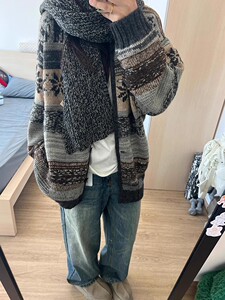秋冬新款设计感重工多层图案费尔岛提花开衫毛衣外套女