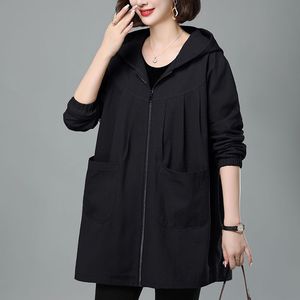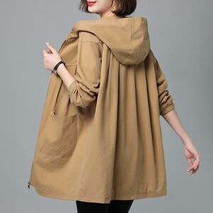 休闲色风衣女中长款2025春秋新款大码宽松中年妈妈气质连帽外套