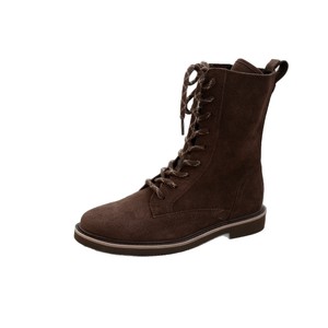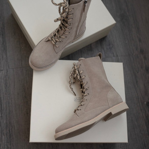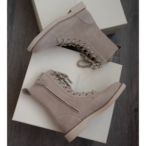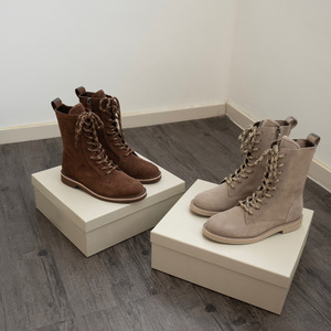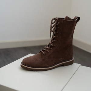 2025秋冬新款英伦风侧拉链系带靴子复古麂皮圆头平底马丁靴女