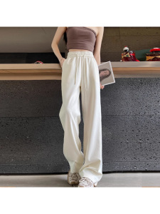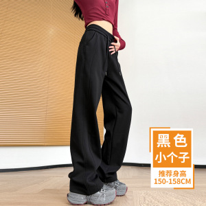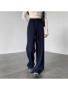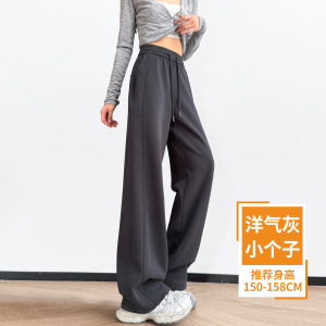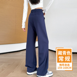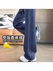 藏青色香蕉阔腿裤女春秋2025新款卫裤小个子窄版直筒裤休闲运动裤