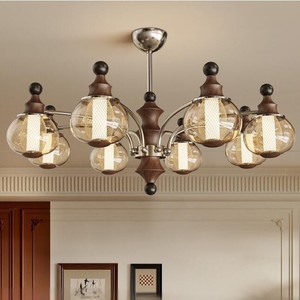 法式中古风客厅吊灯大厅主灯复古胡桃木色书房餐厅卧室护眼吊灯