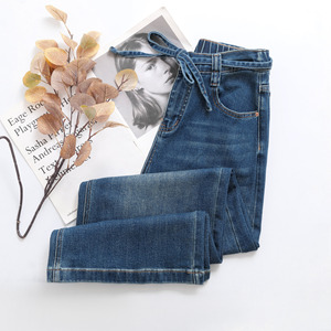 牛大侠秋季200斤胖妹妹简约腰绳装饰遮肉牛仔阔腿裤休闲裤女7979