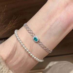 ins风S925银帕拉伊巴蕾丝手链女法式气质镂空微镶清冷感手饰