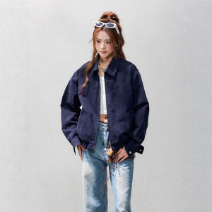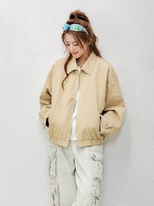 美式复古红色外套女小个子短款美式慵懒chic工装翻领夹克休闲百搭