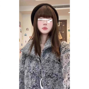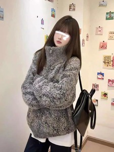 美式慵懒风灰色针织开衫毛衣女秋冬复古潮范宽松立领拉链上衣外套