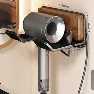胡桃木电吹风置物架免打孔卫生间风筒壁挂支架电吹风机收纳挂架子