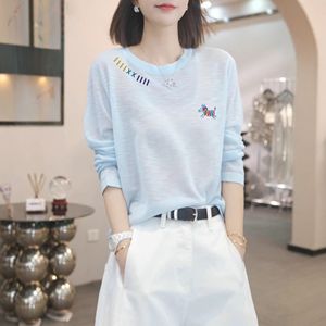 长袖防晒罩衫女夏季宽松微透遮阳雪花棉薄款圆领罩衫宽松上衣