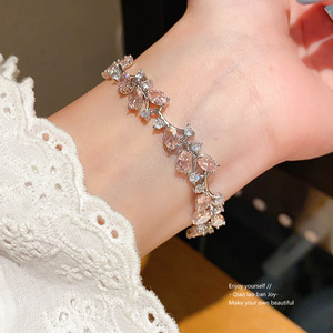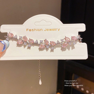 韩系锆石椭圆形树叶手链时尚温柔甜美精致手环轻奢高级感手饰批发