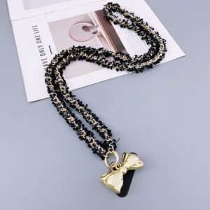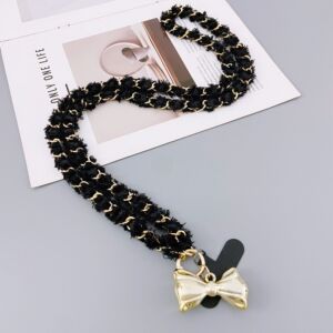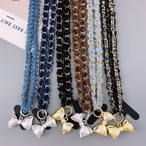 ins时尚高级感手机挂绳 甜美小香风牛仔布毛边包包链条 链条挂饰